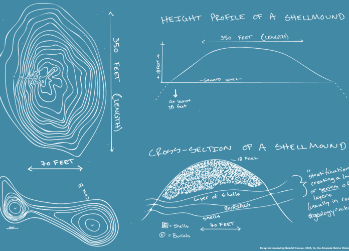 Shellmounds are sacred sites where people in the San Francisco Bay Area, and along a large portion of the California Coastline , buried their loved ones.