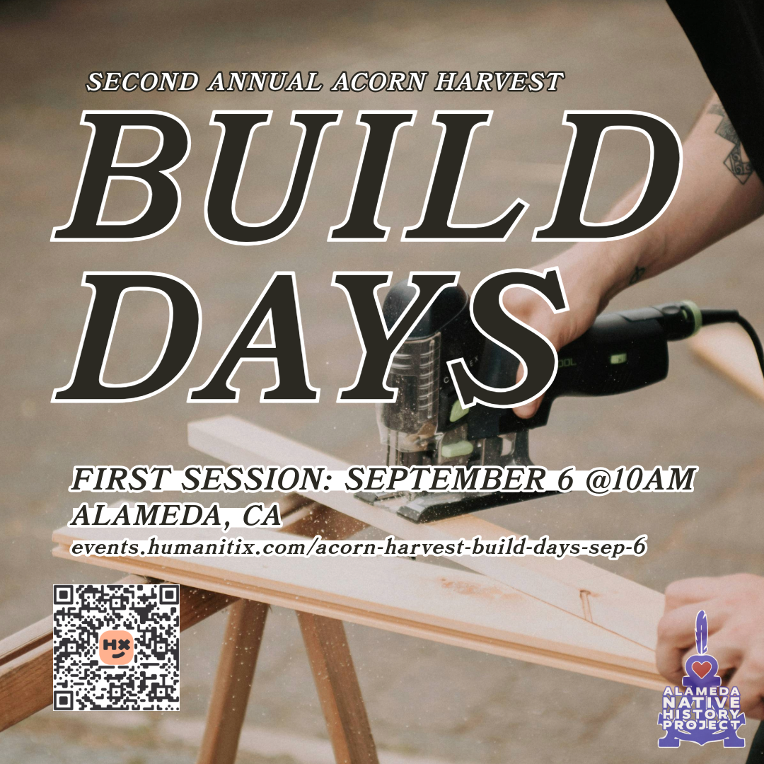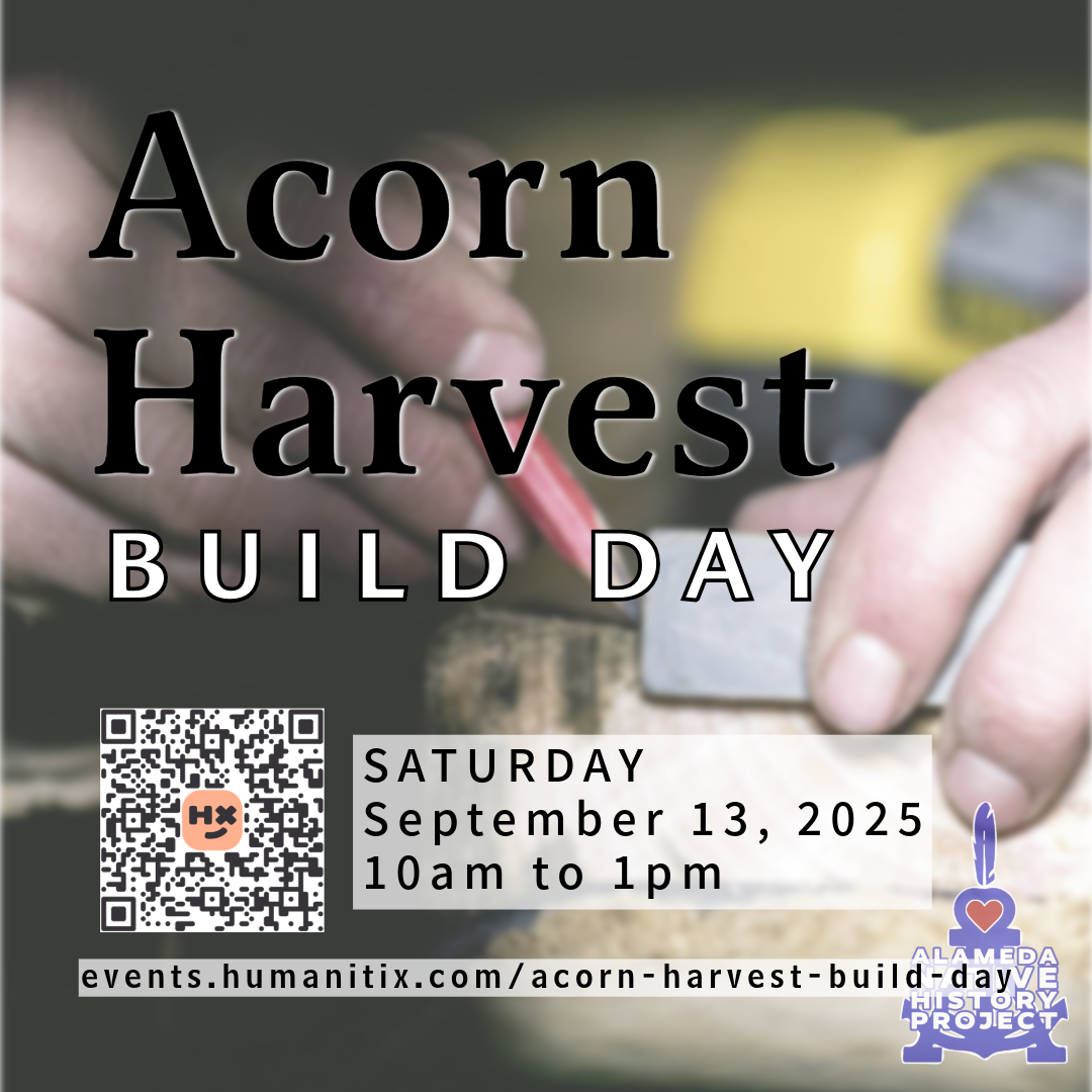 This September, we are coming together to build the specialized tools and equipment that will make the Second Annual Acorn Harvest possible. Whether you are new to our work or a returning volunteer, these Build Days are a chance to contribute directly to reopening Indigenous foodways in the Bay Area.