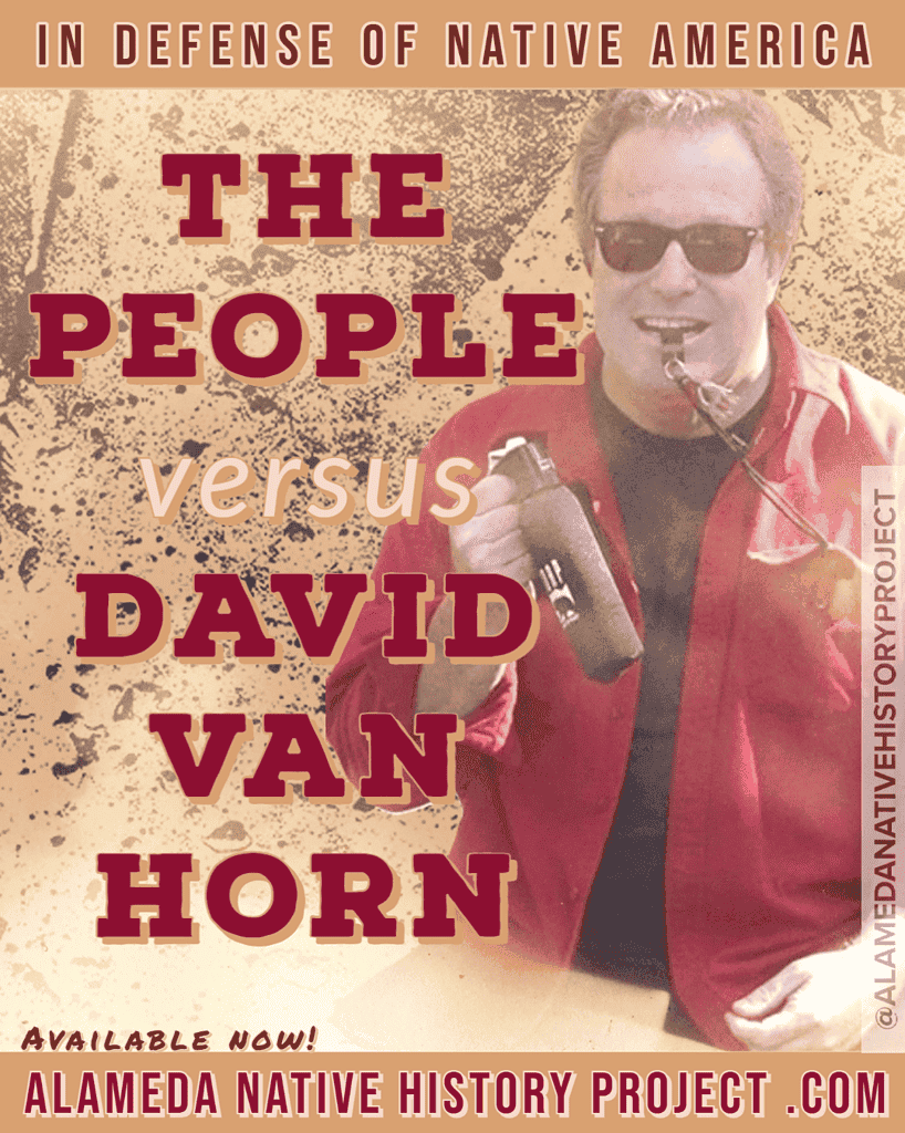 “In Defense of Native America: The People Versus David Van Horn” cover art for @AlamedaNativeHistoryProject on Instagram.com
